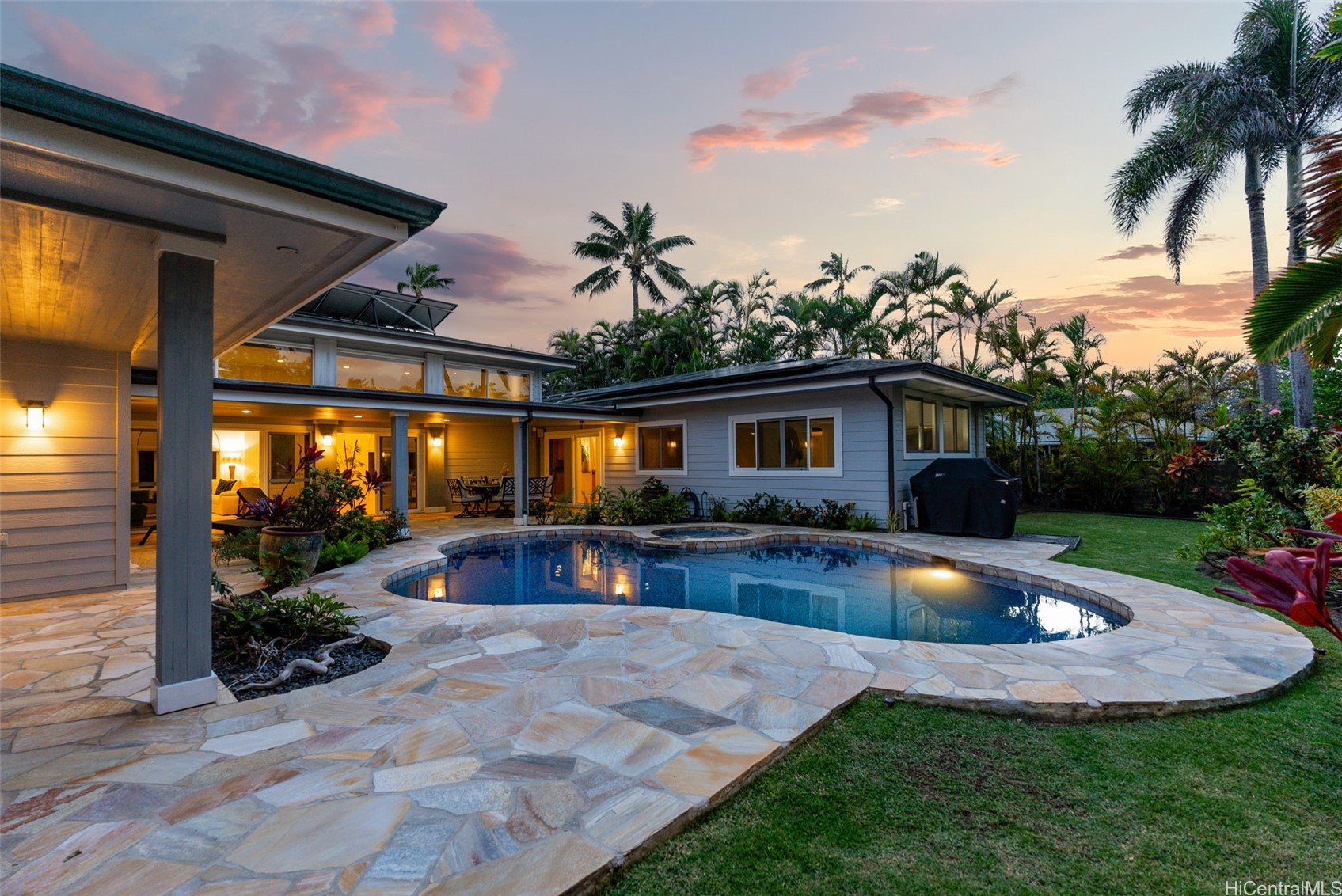 Enjoy the endless ocean views in this custom Lanikai hillside gated estate. Lush landscaping offers complete privacy, encompassing the Infinity Pool, Jacuzzi, Spa & Fire Pit with Bench Seating. Interior features an indoor/outdoor open living feel with Granite & Wood Cabinetry, Exotic Hardwood Flooring, Lutron Smart House Technology with Integrated Speakers, Sound System and top of the line Security System ensures your ease of living. Chef's ocean view kitchen features: Miele Appliances, SubZero Refrigerator, & Wolf 5-Burner GAS Range. Spacious Lanai spans the second floor and puts the incredible Mokulua Islands at the forefront of every view. An Incredible Opportunity in a World Class Location. Within minutes to Whole Foods, Kalapawai Market, and boutique Kailua town.